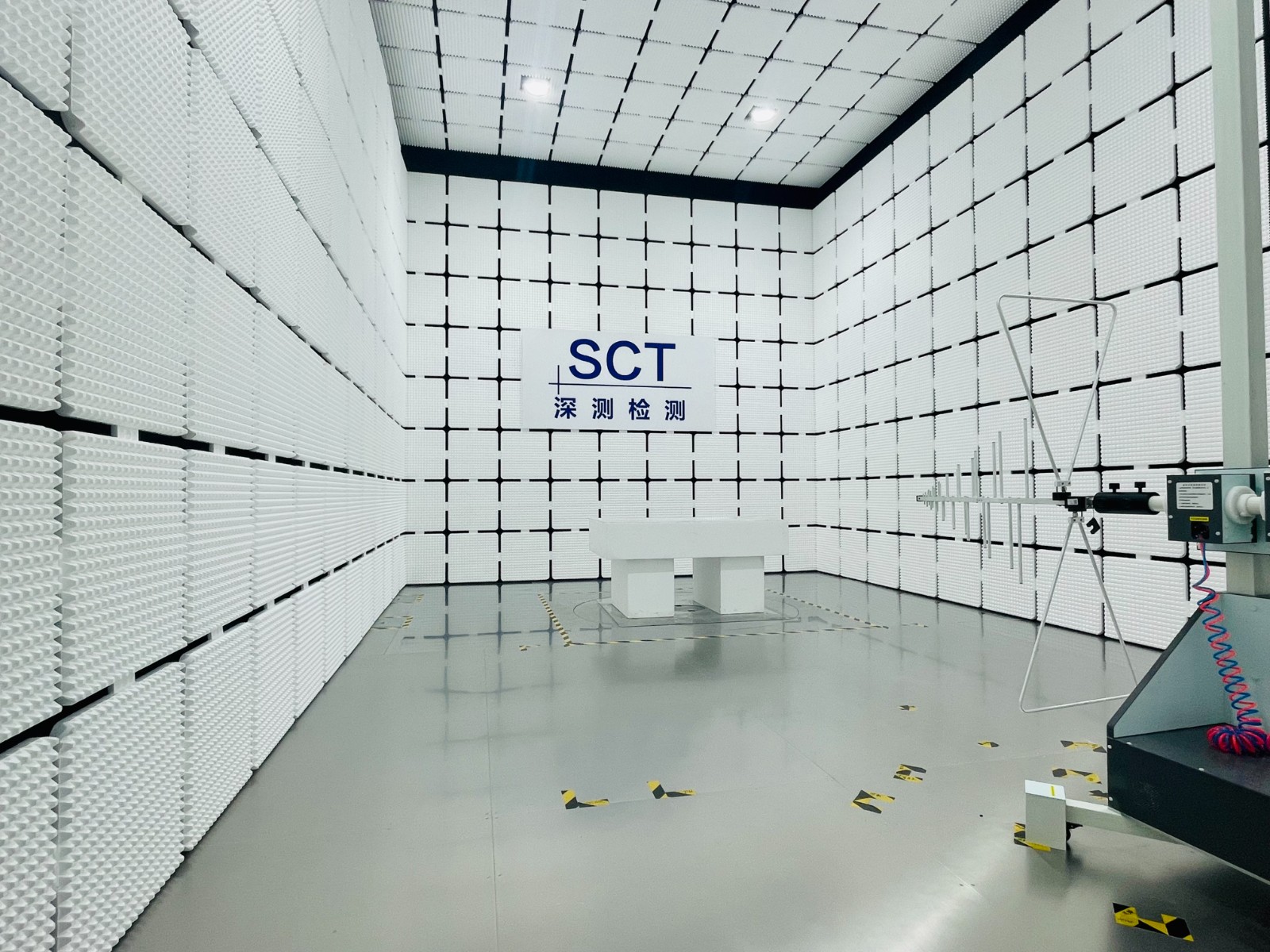 目前EMC電磁兼容檢測(cè)實(shí)驗(yàn)室擁有一間3米法全/半電波966暗室和一間854屏蔽室,完全符合ANSI C63.4、EN50147、CISPR16和GB/T6113等國際國內(nèi)規(guī)范要求,可進(jìn)行9kHz-18GHz輻射騷擾,9KHz-30MHz傳導(dǎo)騷擾以及磁場(chǎng)輻射,30MHz-300MHz騷擾功率測(cè)試。同時(shí)還擁有完善的抗干擾EMS Test Room。